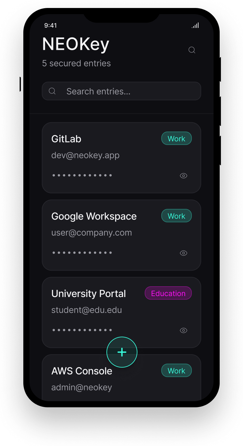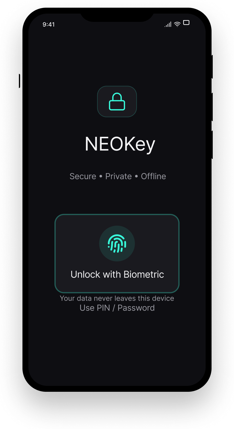 Install the latest build of NEOKey directly on an Android device. (Offline-first • No account required)