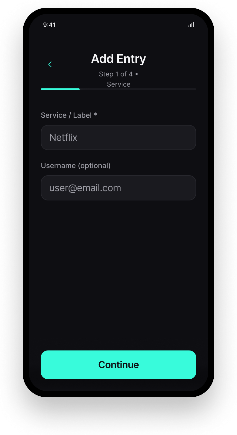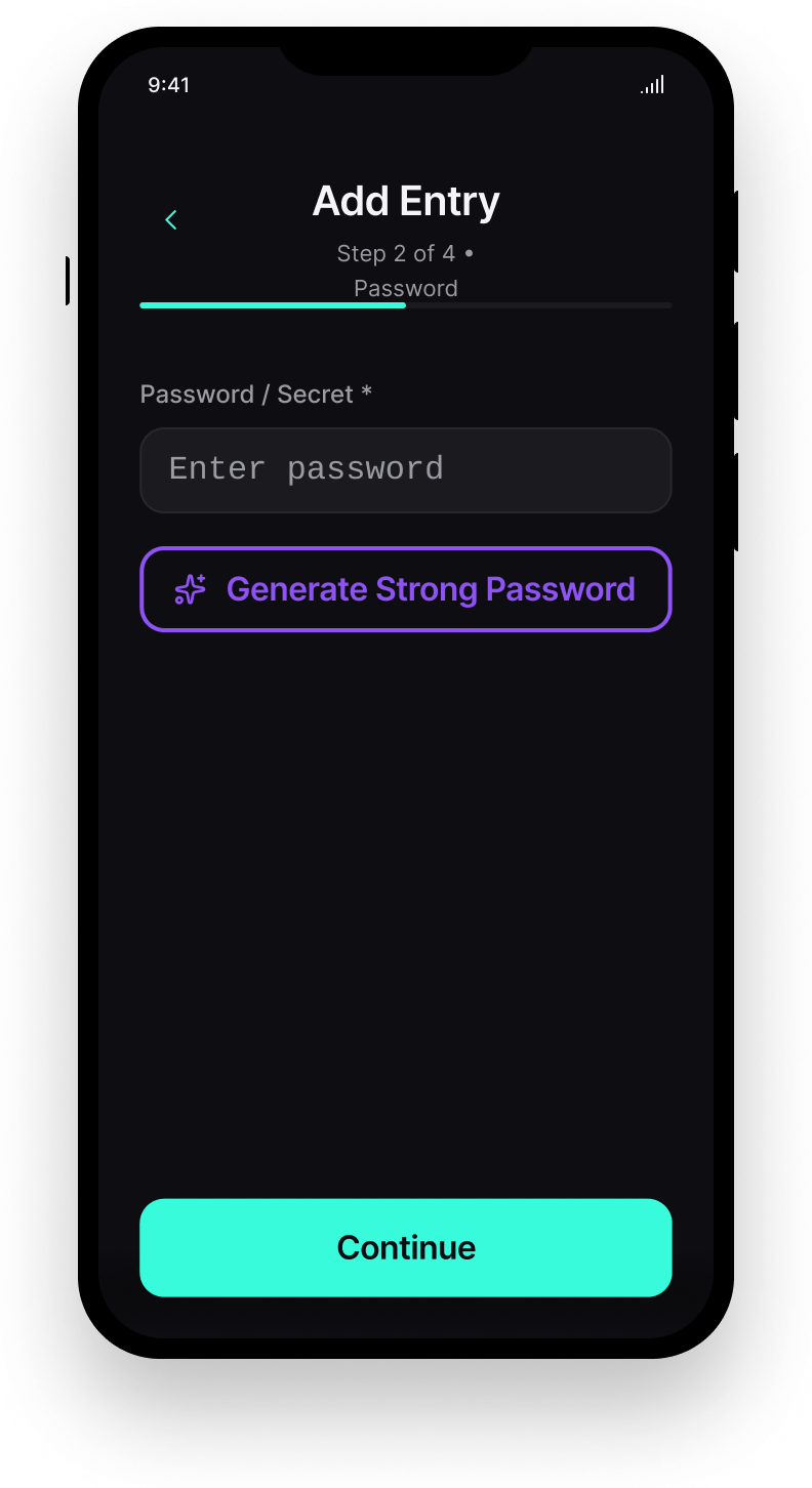 | Create a new password entry using a multi-step wizard without confusion or errors | H1 | 2 |